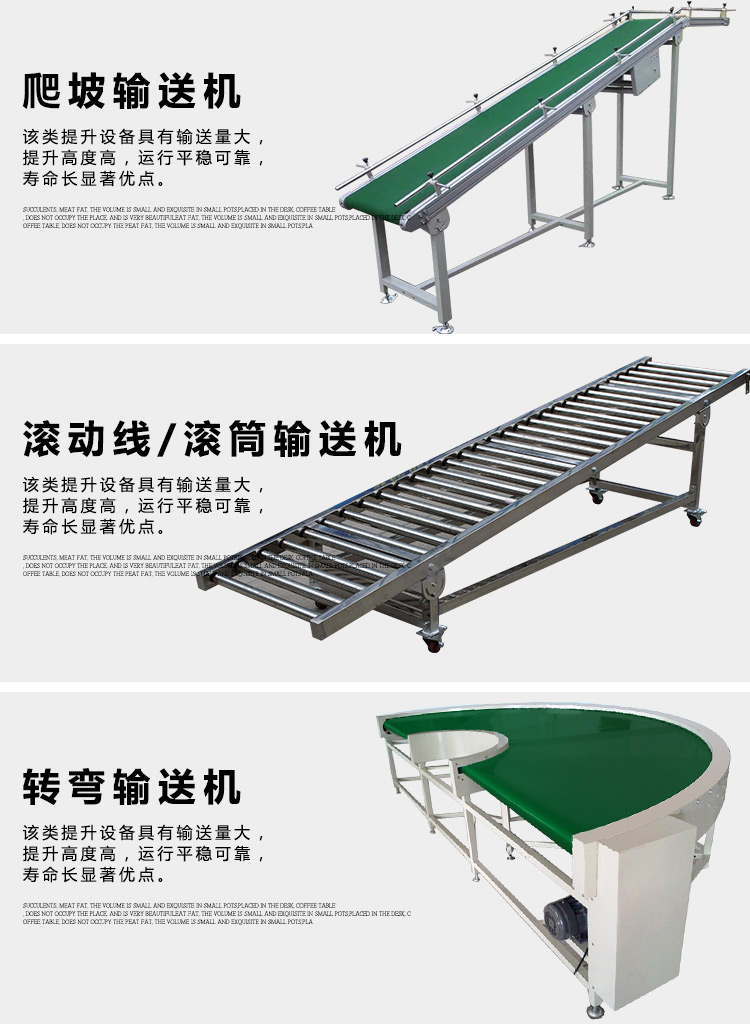 我司專業設計,生產制作各類皮帶輸送機,鏈板輸送機,流水線輸送設備為國內外眾多有名飲料、乳業、啤酒、化工,制藥及機械貿易機構、有名包裝品牌提供了周到的服務。經過數年發展為眾多國內外較好的物流輸送企業提供服務,公司致力于成為國內物流輸送設備行業的一員。經過近年來的積累與歷練,我們已具備專業的輸送機械設備研發創新能力,公司以堅實的產品品質、優良的服務能力,不斷創新的服務意識。